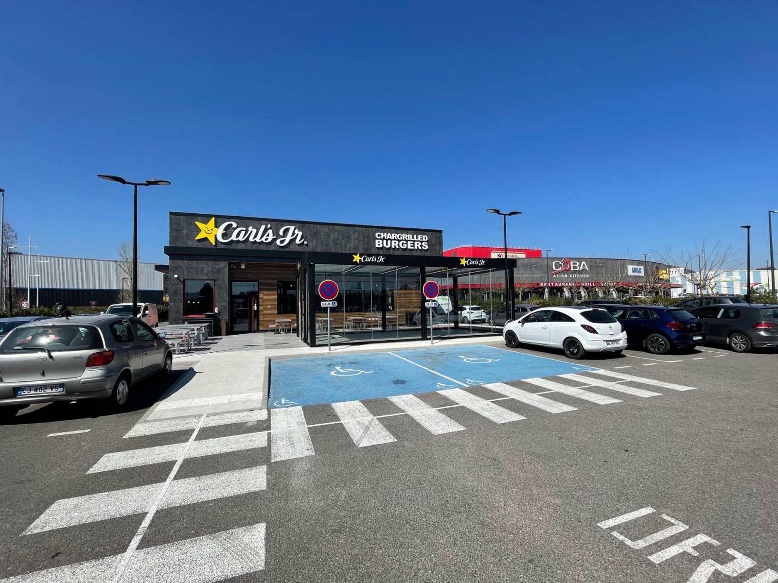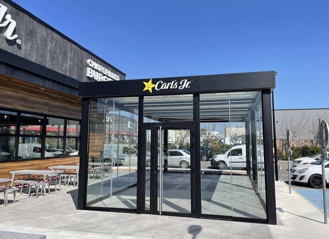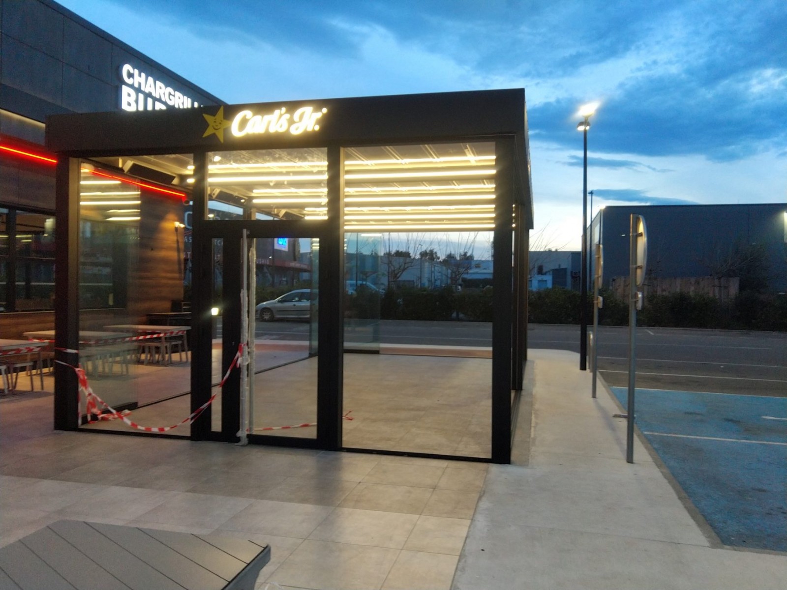 La menuiserie Safap realise la pose d’une pergola bio-thermique de la marque Espace Lounge modèle Ciel Ouv’air pour un fast-food Carls Jr sur la Garde.